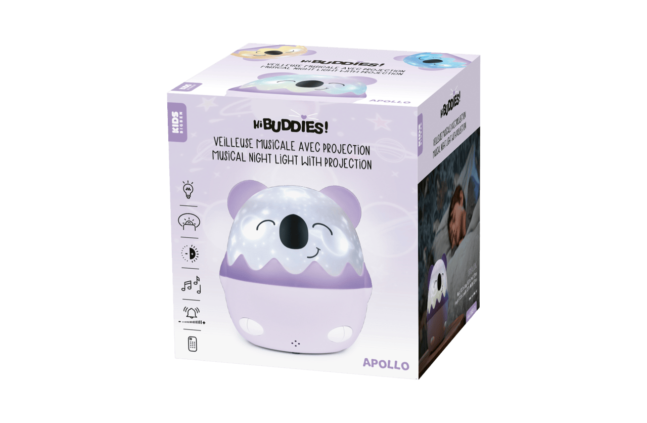 Coco oferuje pełną kontrolę nad oświetleniem i dźwiękiem. Możesz wybrać spośród 4 kolorów światła, 6 poziomów jasności oraz dostosować głośność melodii. Timer z opcjami 15, 30 i 60 minut pozwala na automatyczne wyłączenie urządzenia, co jest praktyczne podczas usypiania dziecka. Pilot zdalnego sterowania ułatwia obsługę, nawet z większej odległości.