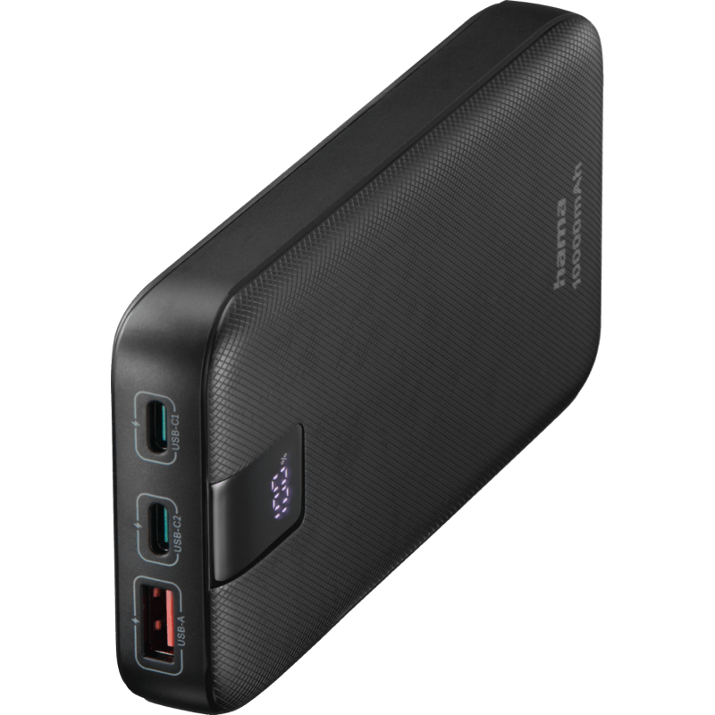 Hama power bank PD 10000 mAh czarny front prawy skos