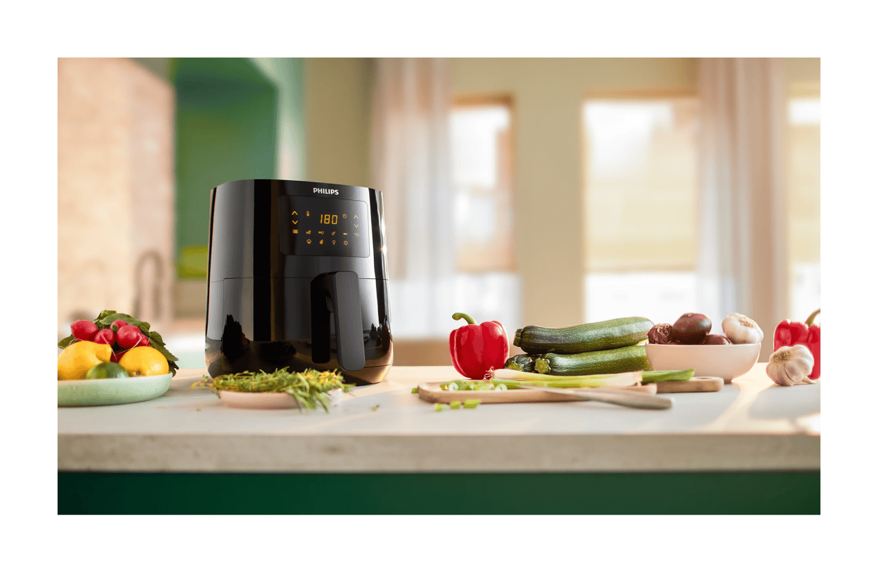 Przygotowuj smaczne i zdrowe potrawy dzięki frytkownicy PHILIPS Ovi Mini HD9252/90. To urządzenie umożliwia pieczenie, smażenie, grillowanie, rozmrażanie, podpiekanie a nawet podgrzewanie posiłków niemal bez tłuszczu i już za dotknięciem jednego przycisku. Dzięki technologii Rapid Air smażone potrawy zawierają nawet o 90% mniej tłuszczu, a do tego są chrupiące na zewnątrz i delikatne w środku. Siedem programów obejmuje łatwe przygotowywanie mrożonych przekąsek, frytek, mięsa, ryb, udek z kurczaka, ciast oraz grillowanych warzyw. Frytkownica PHILIPS pomieści nawet do 4 porcji frytek dla całej rodziny. A proste elementy sterujące zapewniają łatwą i bezproblemową obsługę.